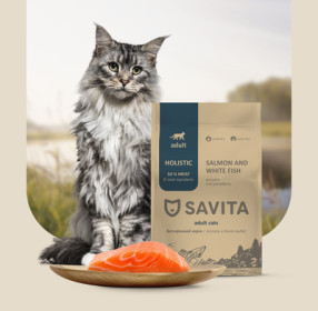 SAVITA беззерновой корм для взрослых кошек с лососем и белой рыбой, 5кг