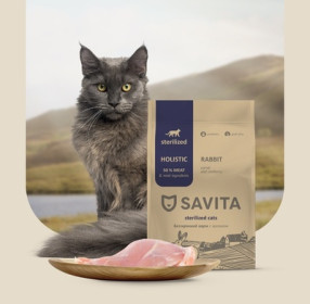SAVITA беззерновой корм для стерилизованных кошек с кроликом, 5кг