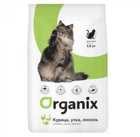 Organix сухой корм для кошек, три вида мяса: курица, утка и лосось, 1,5кг