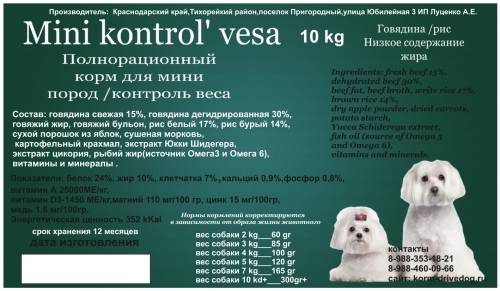 DRIVE DOG MINI KONTROL' VESA Полнорационный корм для мини пород собак / контроль веса говядина, 10кг