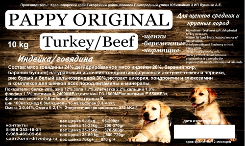 DRIVE DOG PAPPY ORIGINAL корм для щенков средних и крупных пород индейка / говядина, 10кг