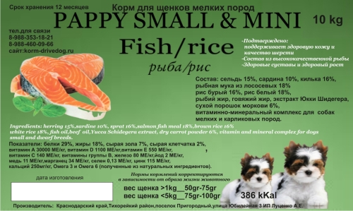 DRIVE DOG Pappy Small & Mini корм для щенков мелких пород рыба / рис, 5кг