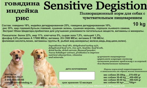 DRIVE DOG Sensetive Degistion Полнорационный корм для собак с чувствительным пищеварением говядина / индейка / рис, 5кг