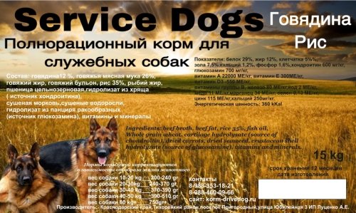 DRIVE DOG Service Dogs Полнорационный корм для служебных пород собак говядина / рис, 5кг