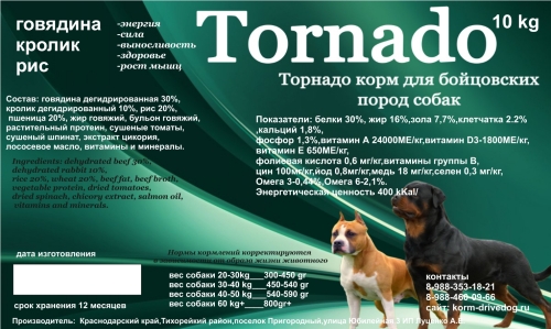 DRIVE DOG Tornado Полнорационный корм для бойцовских пород собак говядина / кролик / рис, 5кг