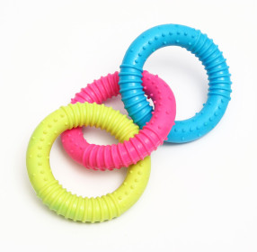 Игрушка жевательная "Всегда вместе!", TPR, 3 кольца по 8 см, сине/розово/жёлтая