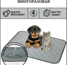 Пеленка для животных собак кошек, многоразовая 100*70см, серая