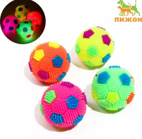 Мячик светящийся для собак "Футбол", TPR, 6,5 см, микс цветов