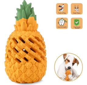 Игрушка для собак "Ананас" с отверстием для лакомств, резиновая, цвет: оранжевый/зеленый, длина 15 см